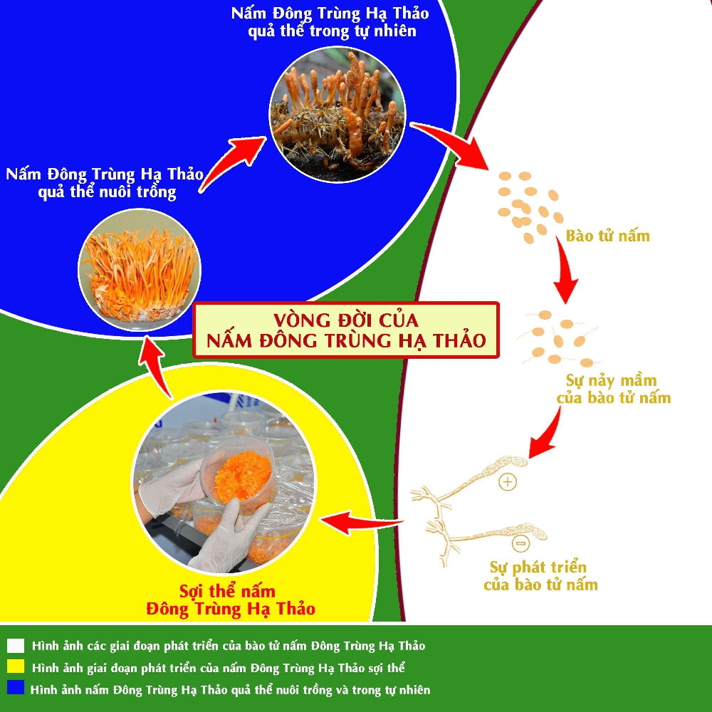Trong khi đó, sản phẩm đế Đông trùng hạ thảo được nuôi cấy ở Việt Nam, Trung Quốc, Hàn Quốc… chủ yếu là Cordyceps militaris dạng quả thể.