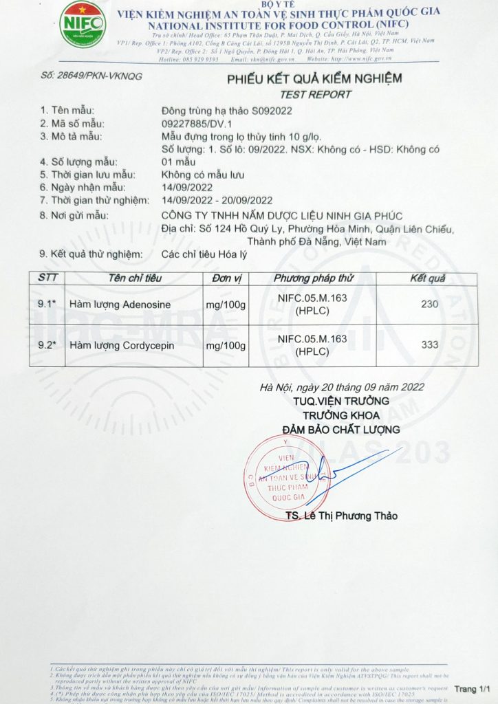 – HÀM LƯỢNG CORDYCEPIN: 333 mg/100g